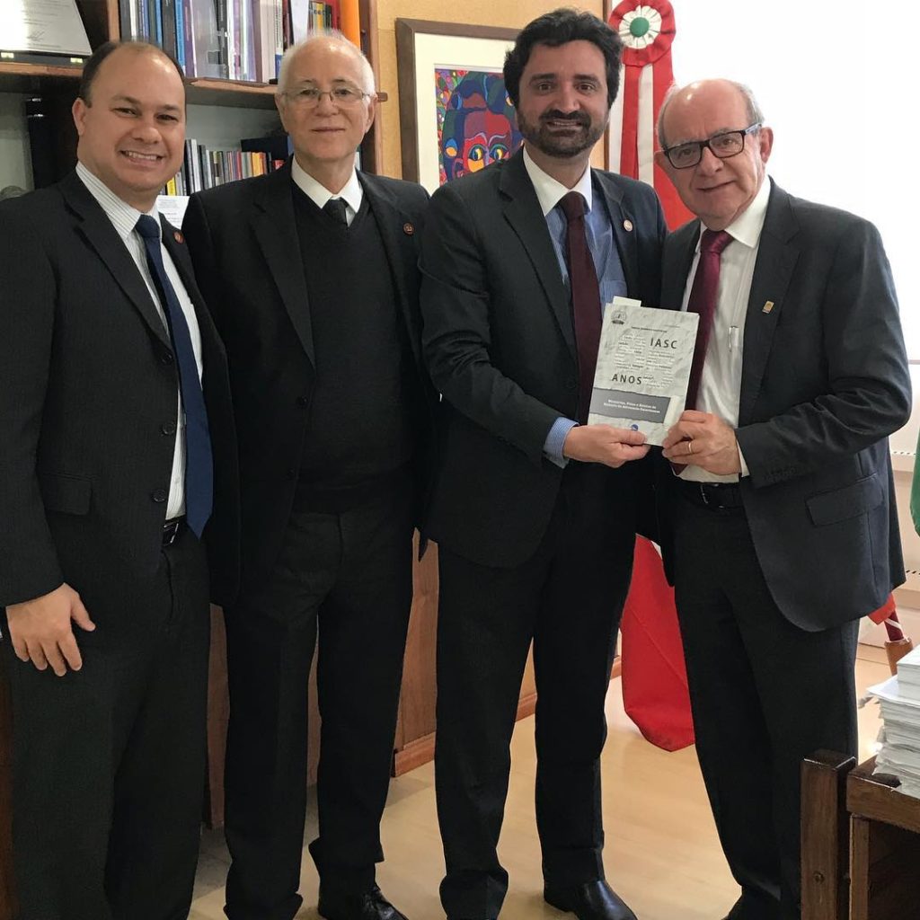 Visita institucional do presidente do IASC, Dr Gilberto Lopes Teixeira, ao magnífico reitor da Universidade Federal de Santa Catarina, Prof. Dr Ubaldo Balthazar, acompanhado do Comendador prof Dr José Isaac Pilati e Dr Pablo Henrique Motta Torres.