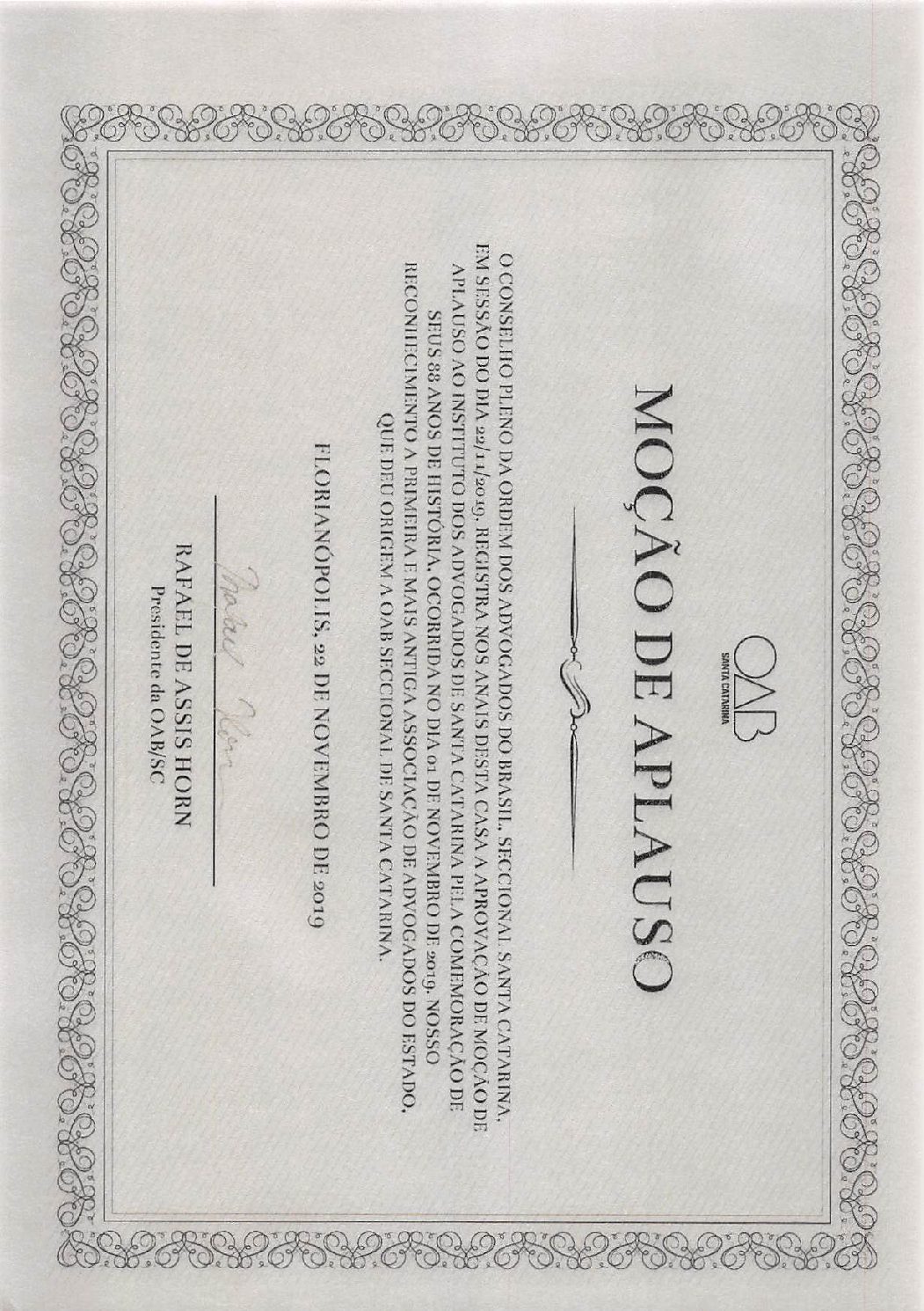 Conselho Pleno da OAB Catarinense aprova moção de aplauso ao IASC