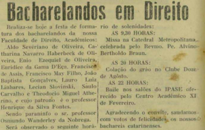 Notícias da Formatura de Catharina em 1947 – Jornal O Estado: